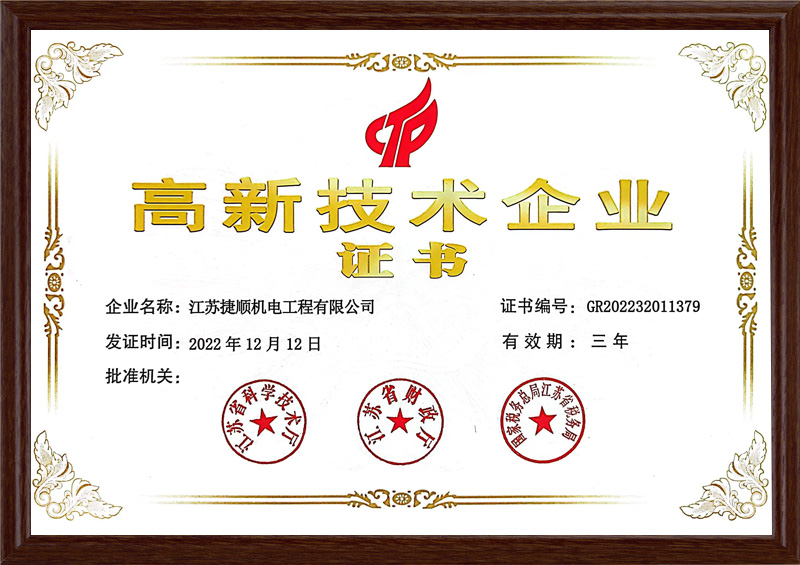 機(jī)電設(shè)備高新技術(shù)企業(yè)證書 |