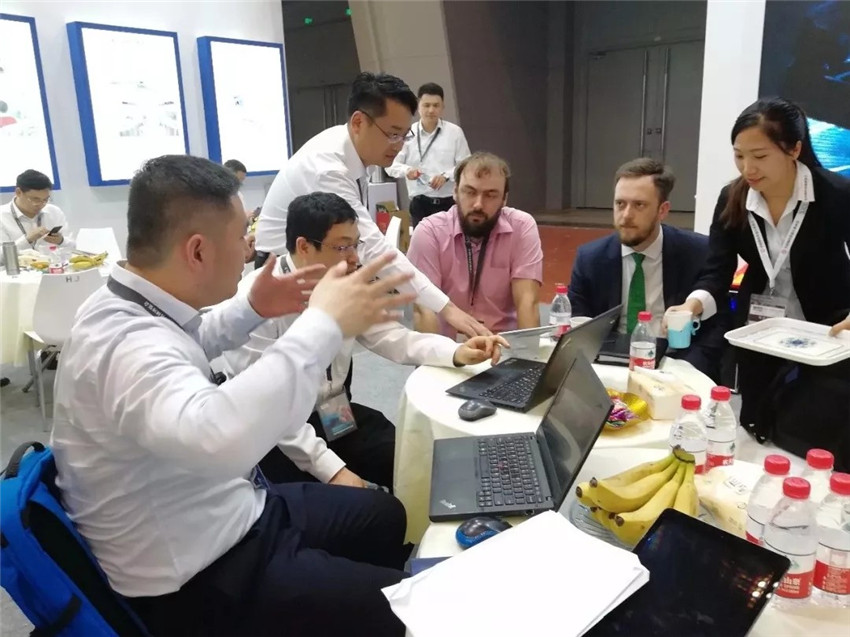 展會(huì)第一天,俄羅斯幾位客戶特意趕到現(xiàn)場(chǎng),與捷順的工程師們進(jìn)行項(xiàng)目方案的交流。捷順的工程師認(rèn)真而專(zhuān)業(yè)的為客戶進(jìn)行了深入的技術(shù)講解,并且表示期待與俄羅斯客戶達(dá)成合作意識(shí)。